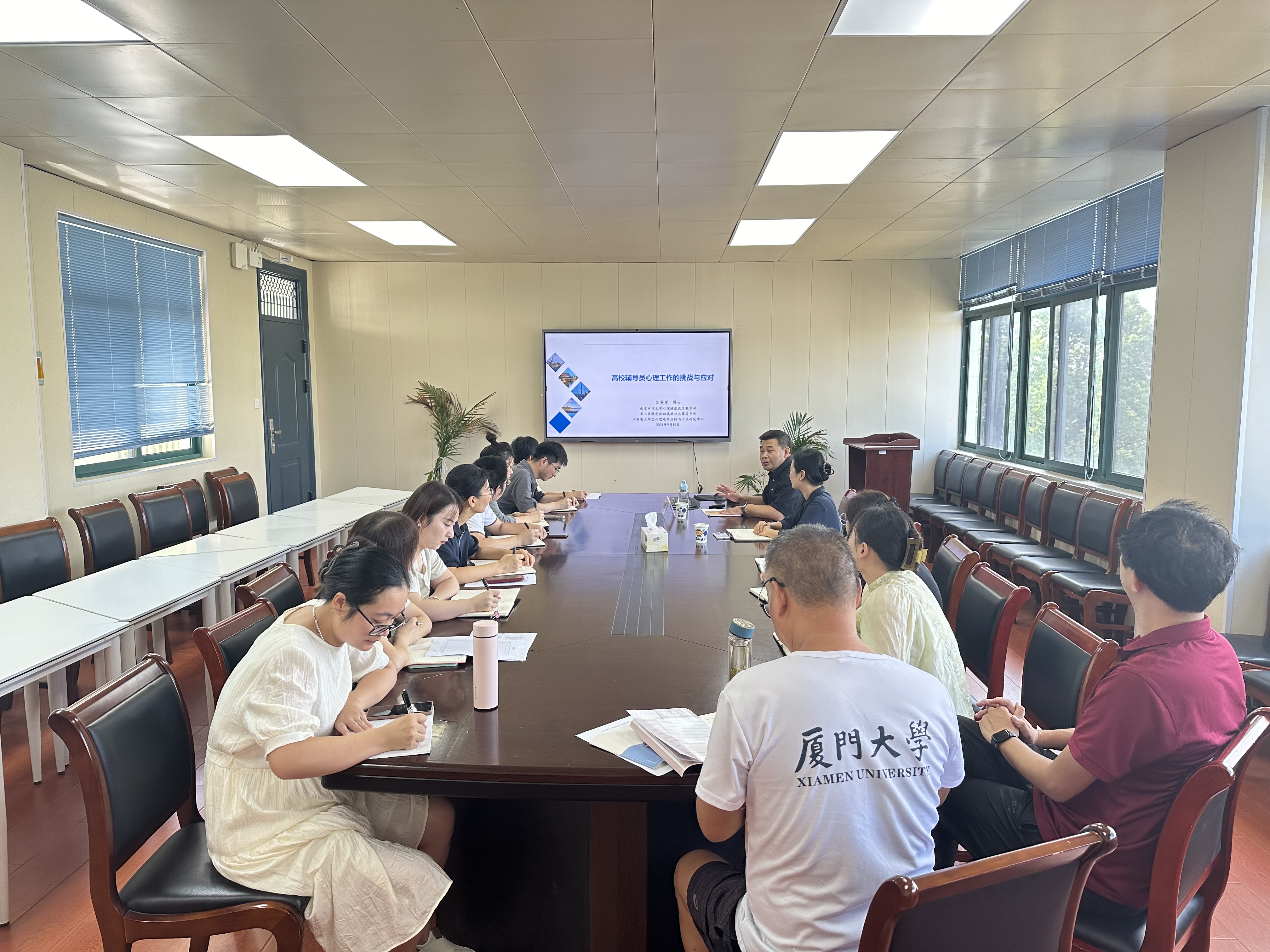为进一步提高辅导员心理健康教育工作实效,搭建辅导员交流研讨平台,深入推进辅导员队伍建设,9月19日,学院于广学楼303会议室举办第八期“高校辅导员心理工作的挑战和应对”主题“点亮青春”辅导员论坛,南京审计大学专职心理健康教师,南京师范大学发展与教育心理学博士,国家二级心理咨询师吕英军应邀作专题报告。学院党委副书记樊元华、团委书记、全体专职辅导员参加。